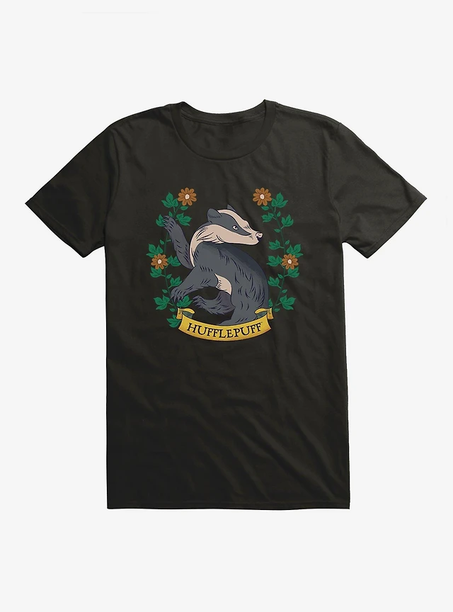 Harry Potter Hufflepuff Crest Floral Womens T-Shirt
