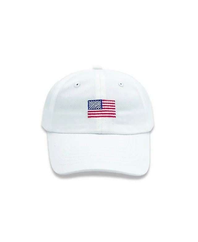 Bits & Bows Girls American Flag Bow Baseball Hat in White