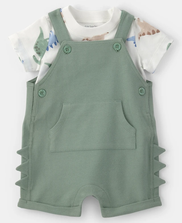 Carter's Baby Boys' Dinosaur Short-Sleeve T-Shirt and Spiked Shortall, 2-Piece Set