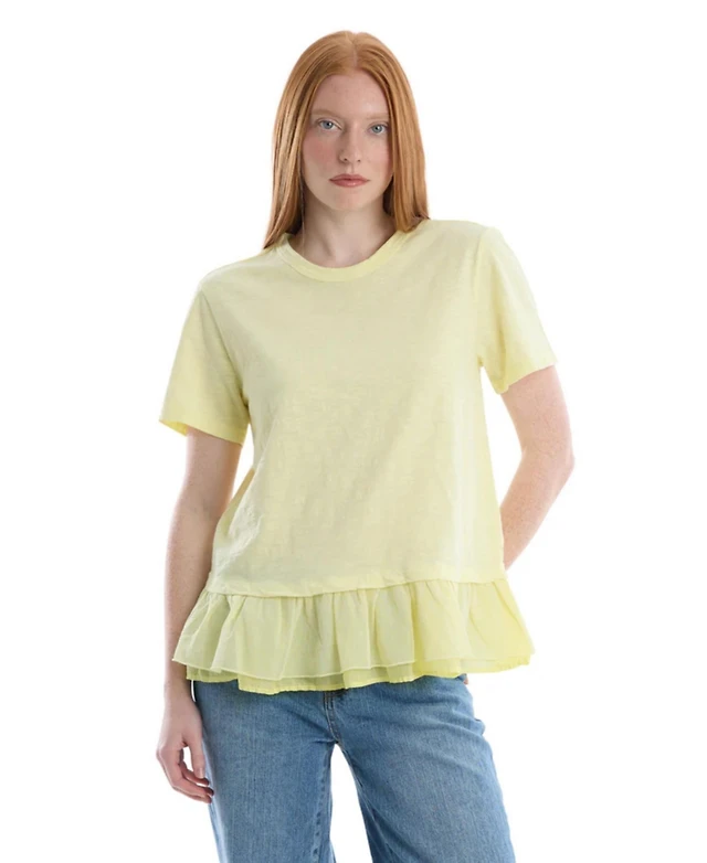 Wilt Clothing Women's Boxy Mixed Fabric Hem Tee