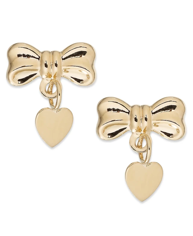 Bow and Heart Drop Earrings in 14k Gold