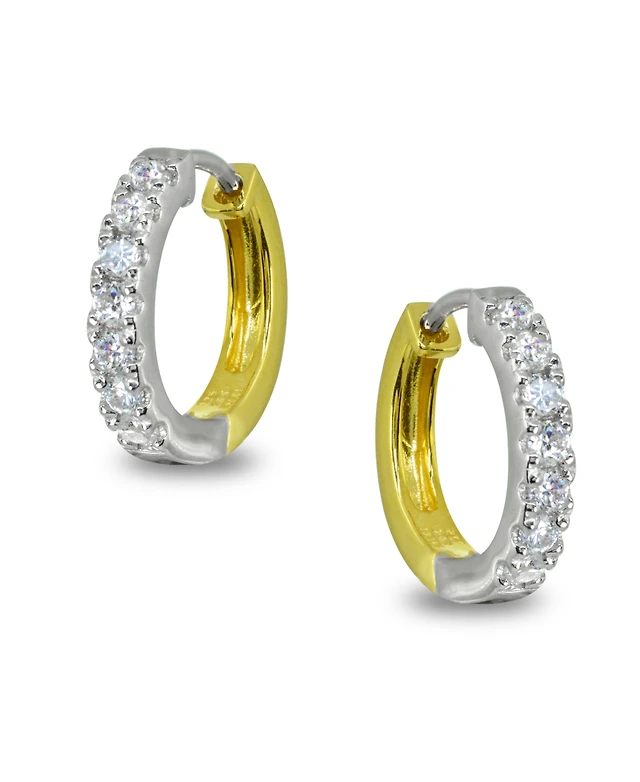 Cubic Zirconia Huggie Hoop Earrings in Two Tone 18k Gold Plate & Sterling Silver