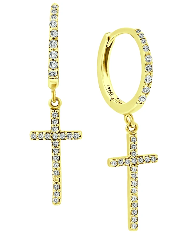 White Topaz Cross Mismatch Small Hoop Earrings (1/5 ct. t.w.) in Gold-Plated Sterling Silver, 0.75"