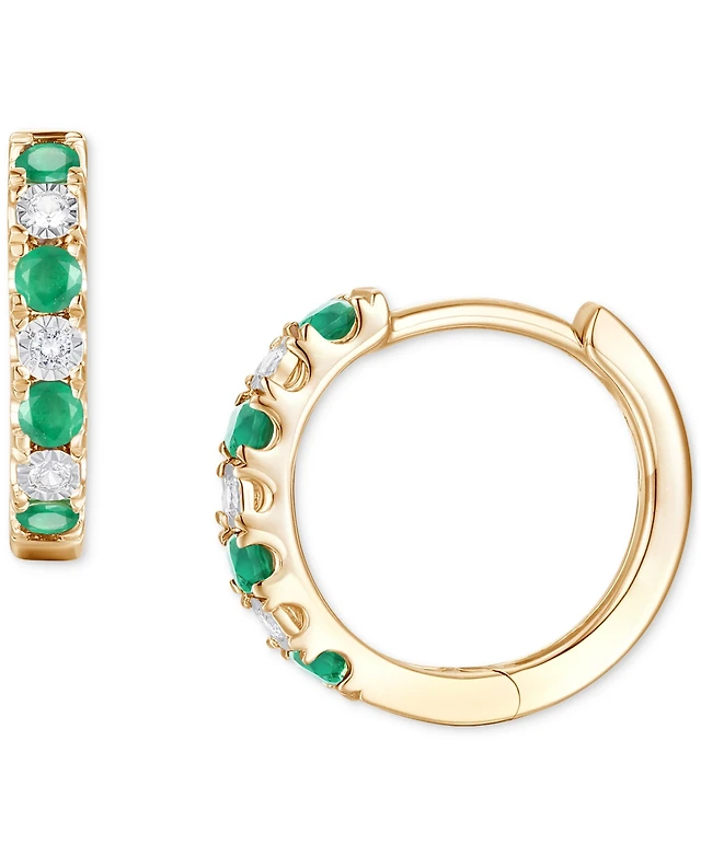 Emerald (1/6 ct. t.w.) & Diamond Accent Small Hoop Earrings in 14k Gold, 0.75" (Also in Ruby & Sapphire)