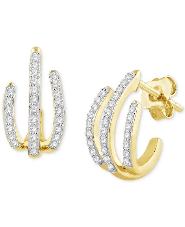 1/2 CT. T.w. Lab-Grown Diamond Spiky J-Hoop Earrings in Sterling Silver and 10K Gold Plate (F/Si2)