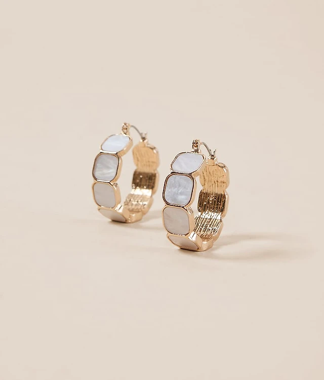 2028 Gold-Tone Semi Precious Round Stone in Hoop Earrings