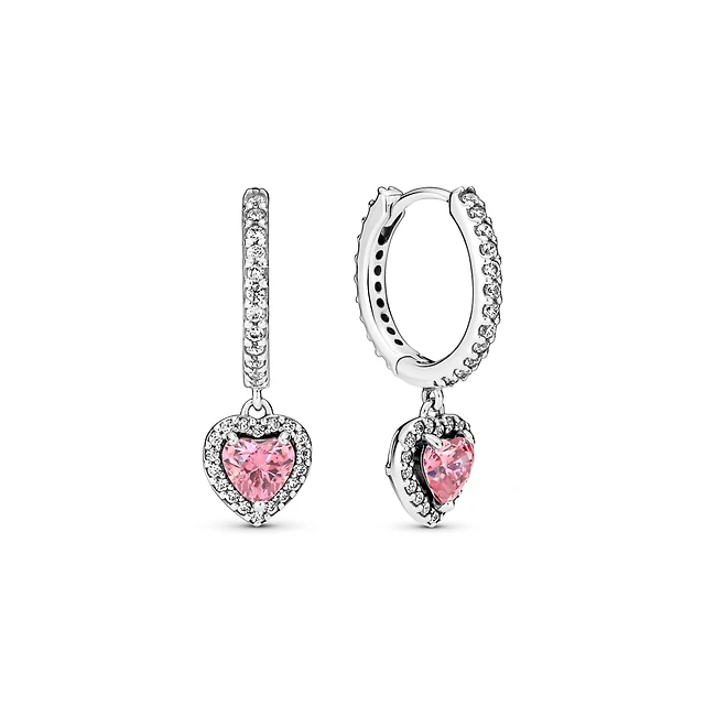 Bling Jewelry Romantic Pink Heart Cz Hoop Earrings Small Huggie Sterling Silver