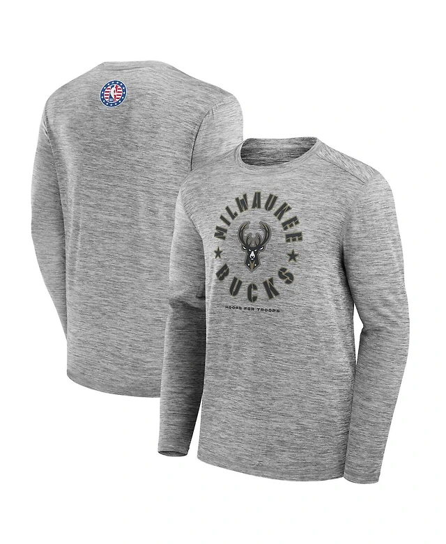 Fanatics Men's Heather Gray Milwaukee Bucks Nba Hoops for Troops Long Sleeve T-Shirt
