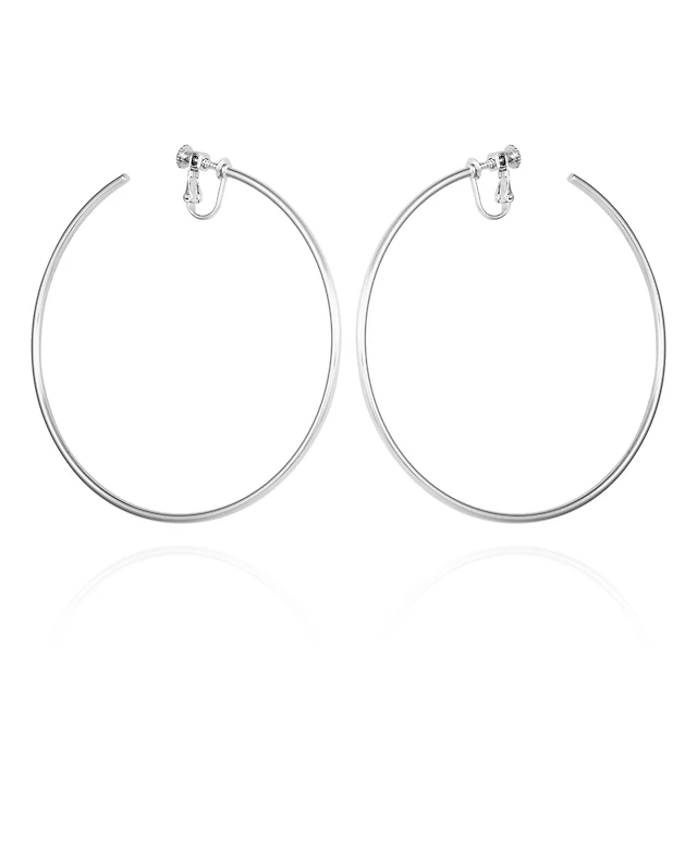 Ettika Rhodium Plated Large Thick Classic Hoop Earrings