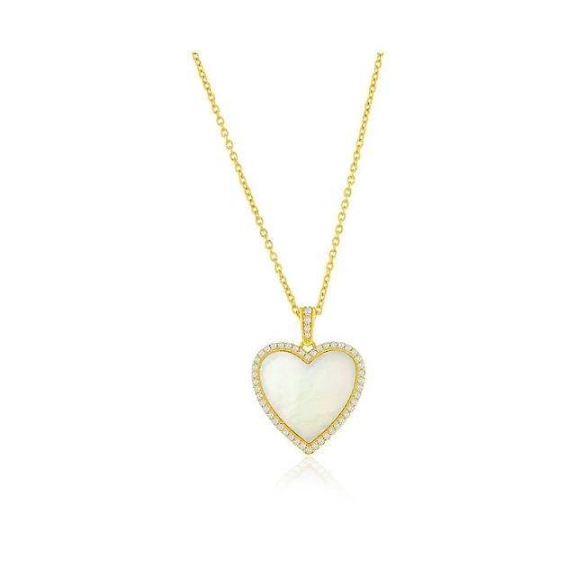 GiGiGirl 14K Gold Plated with Mother of Pearl Heart Design Pendant Necklace Engraving: “You are my heart forever”