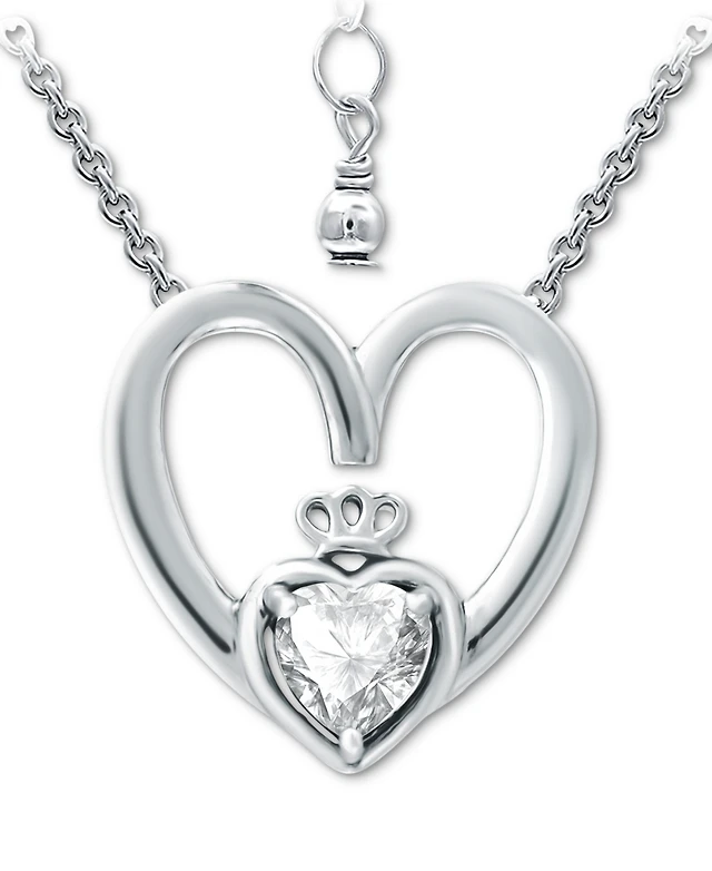 Lab Grown White Sapphire (5/8 ct. t.w.) Sterling Silver, Heart Necklace