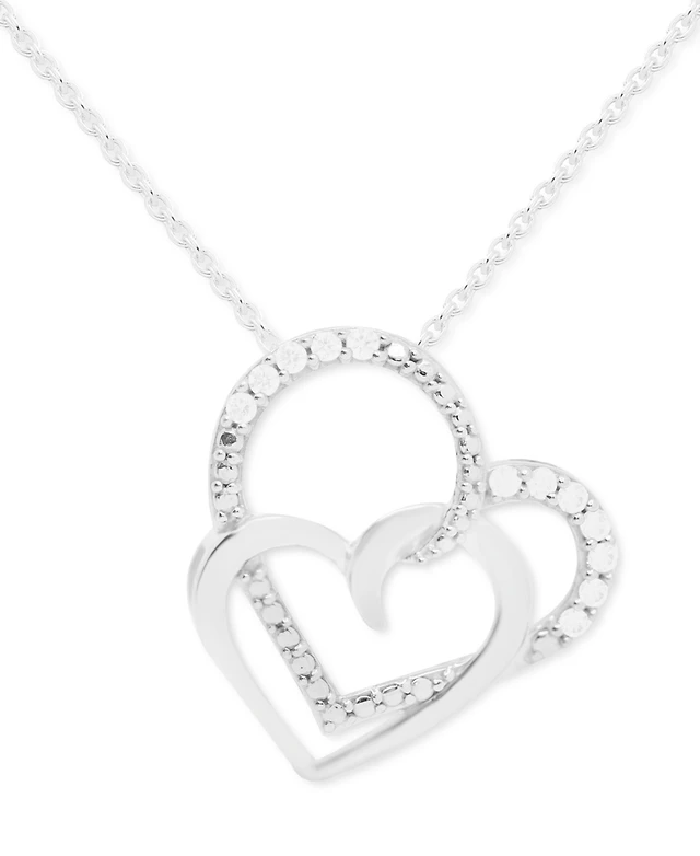 Diamond Double Heart Adjustable Pendant Necklace (1/4 ct. t.w.) in Sterling Silver