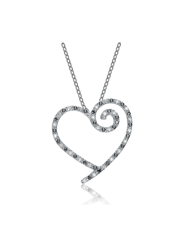 Enhanced Black and White Diamond Accent Tilted Heart Pendant in Sterling Silver