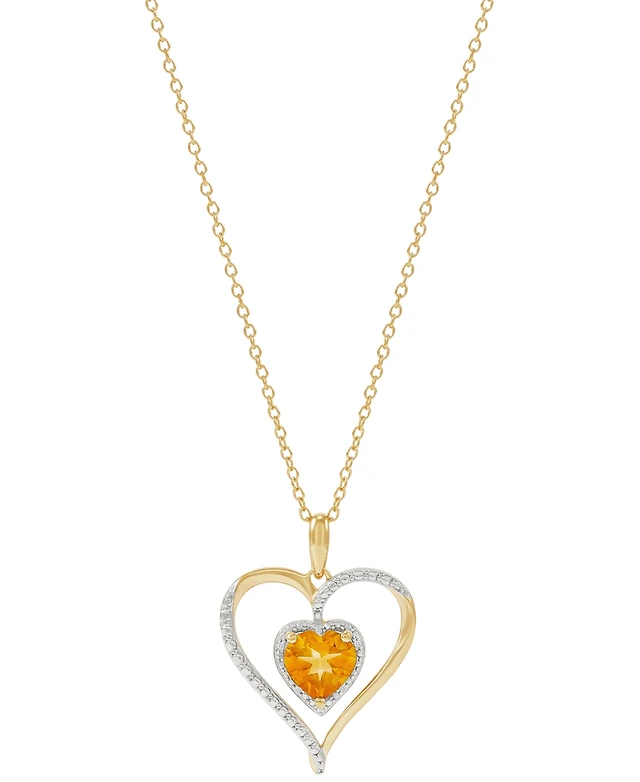 Birthstone Gemstone & Diamond Accent Heart 18" Pendant Necklace 14k Gold-Plated Sterling Silver