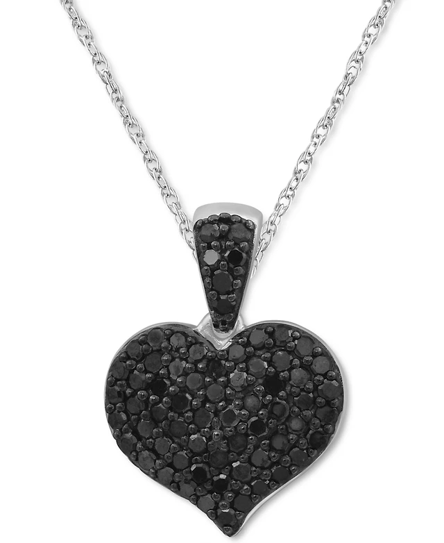 Black & White Diamond Heart Drop 18" Pendant Necklace (1/6 ct. t.w.) in Sterling Silver