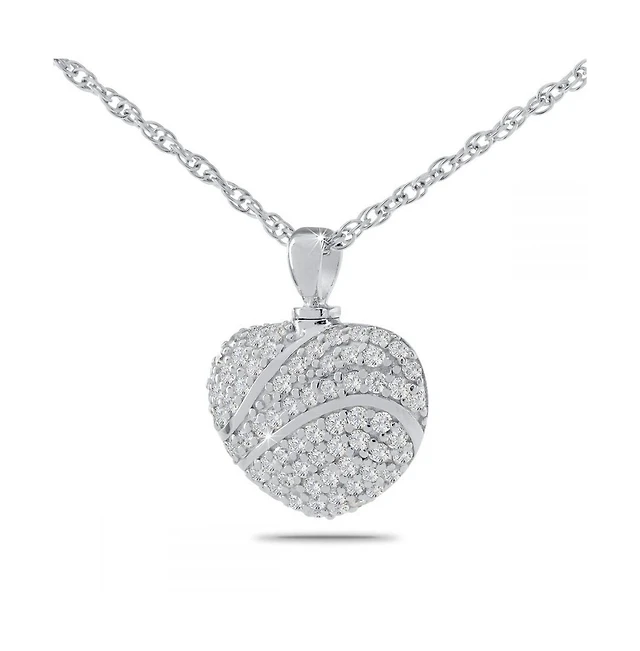 Bling Jewelry Large Pave Cz Puff Heart Shape Aromatherapy Essential Oil Perfume Diffuser Locket Pendant Necklace