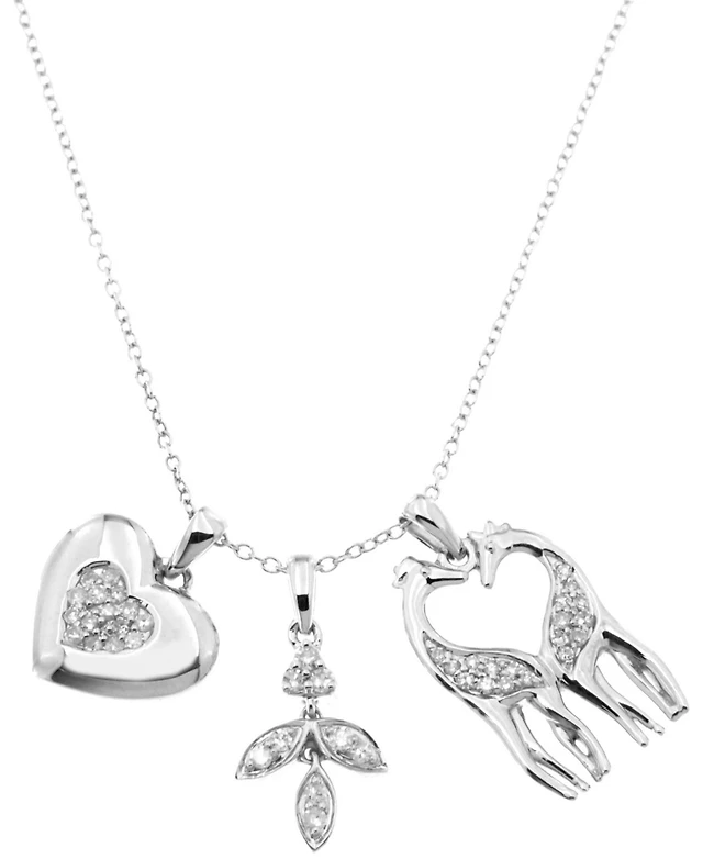 18k Gold over Sterling Silver and Sterling Silver Heart Necklace, Diamond Accent Three Interlocking Heart Pendant