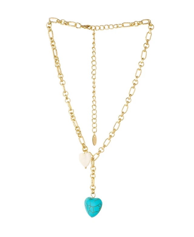 The Lovery Mixed Blue Heart Station Necklace 14K Gold