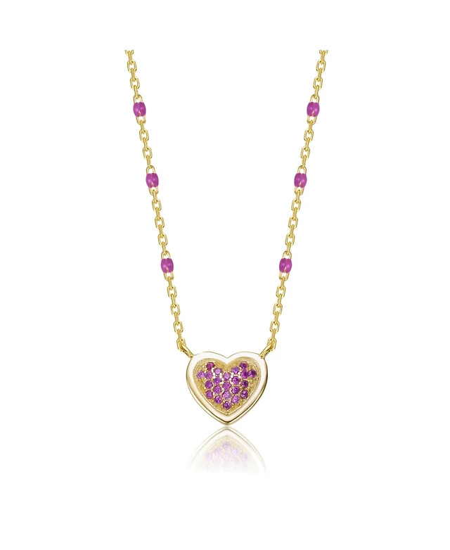 Lily Nily Girls Cz Inlay Heart Necklace in 18k Gold over Sterling Silver