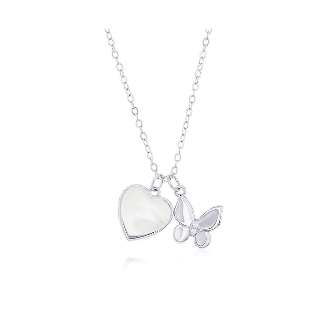 Caribbean Treasures Sterling Silver Mop & Heart Cz Necklace