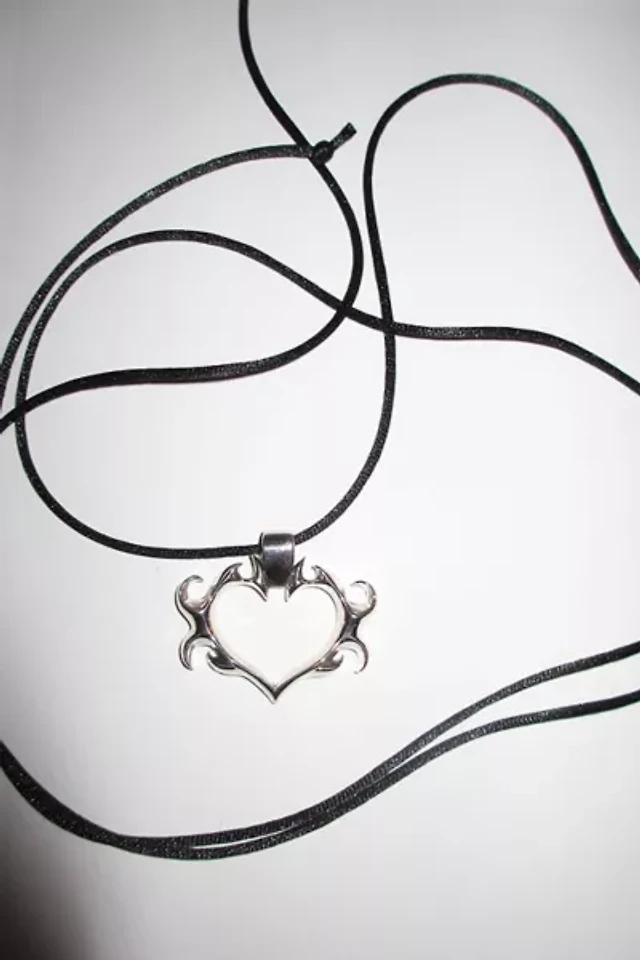 Stone + Locket Spiked Heart 16" Silver Necklace
