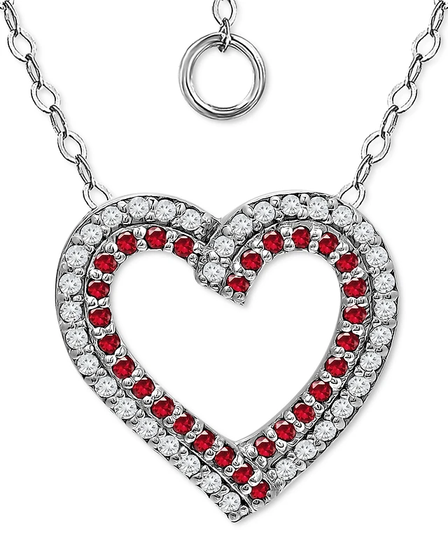 Giani Bernini Lab-Grown Ruby & Cubic Zirconia Heart-in-Heart Pendant Necklace in Sterling Silver, 16" + 2" extender, Created for Macy's