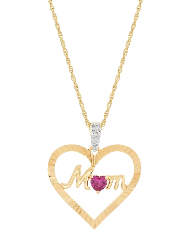 Lab Created Pink Sapphire (3/8 ct. t.w.) & Diamond (1/10 ct. t.w.) Mom Heart Pendant Necklace in 14k Yellow Gold-Plated Sterling Silver, 16" + 2" exte