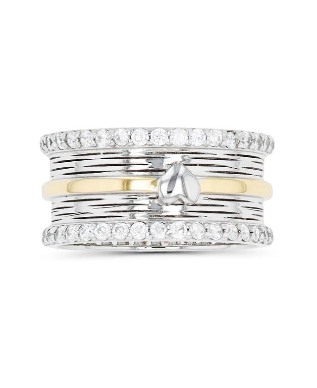 Cubic Zirconia Heart Promise Stack Ring 14k Gold-Plated Sterling Silver