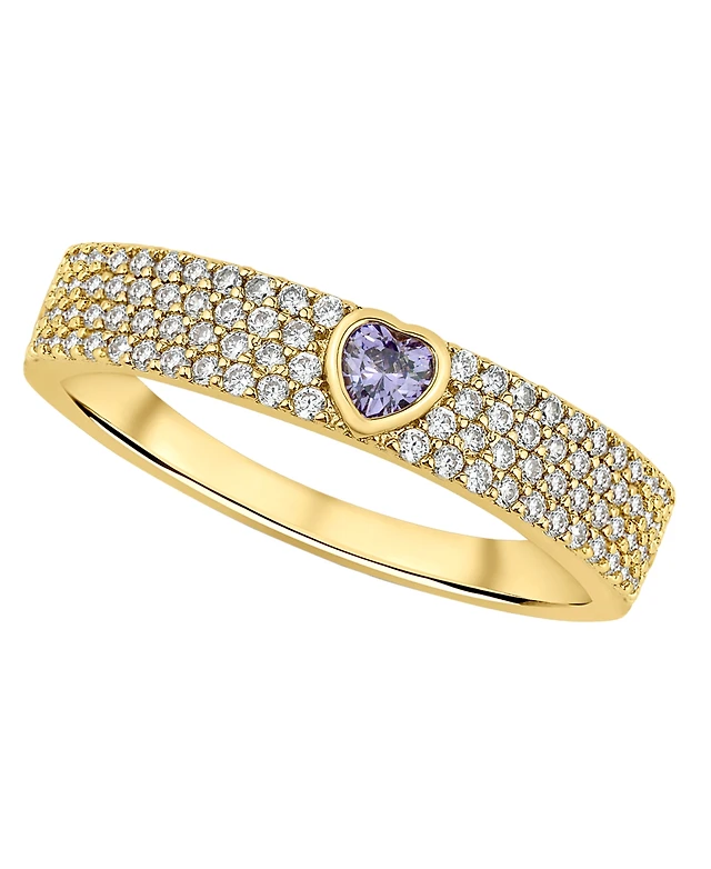 GiGiGirl 14k Yellow Gold Plated with Purple Cubic Zirconia Cluster Heart Halo Promise Ring