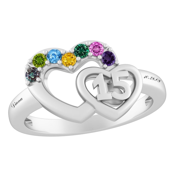 Mother's Heart-Shaped Simulated Birthstone Ring in 10K Gold (2-6 Stones and Names)
