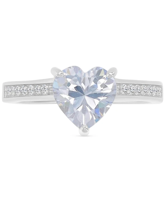 Cubic Zirconia Heart & Round Promise or Engagement Ring Sterling Silver