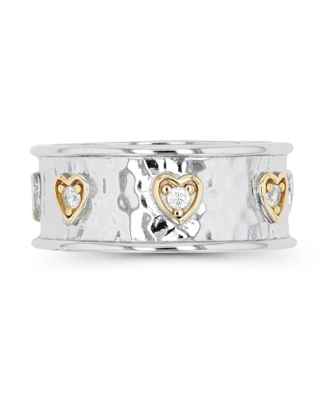 Sterling Silver Two Tone and Clear Cubic Zirconia Heart Ring