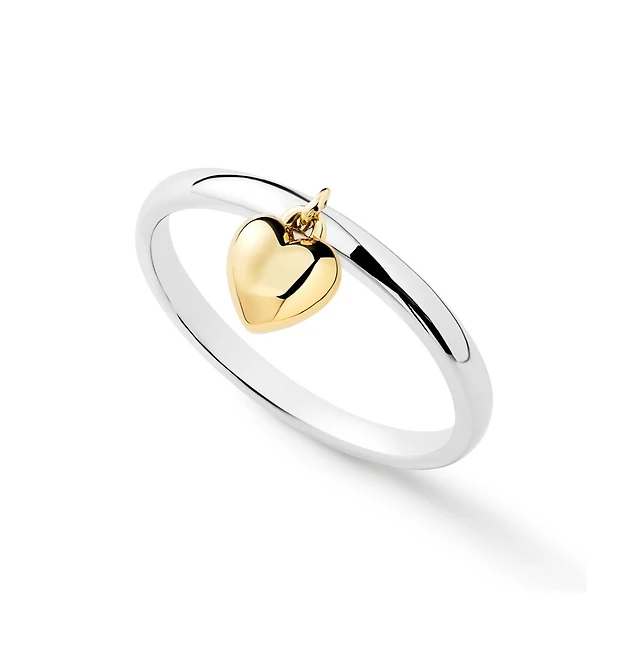 Sterling Silver Two Tone and Clear Cubic Zirconia Heart Ring