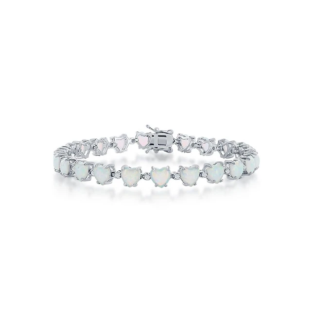 Diamond Heart Link Bracelet (1/6 ct. t.w.) in Sterling Silver
