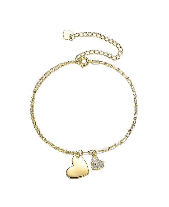Giani Bernini Double Row Heart Ankle Bracelet 18k Gold-Plated Sterling Silver & Silver, Created for Macy's