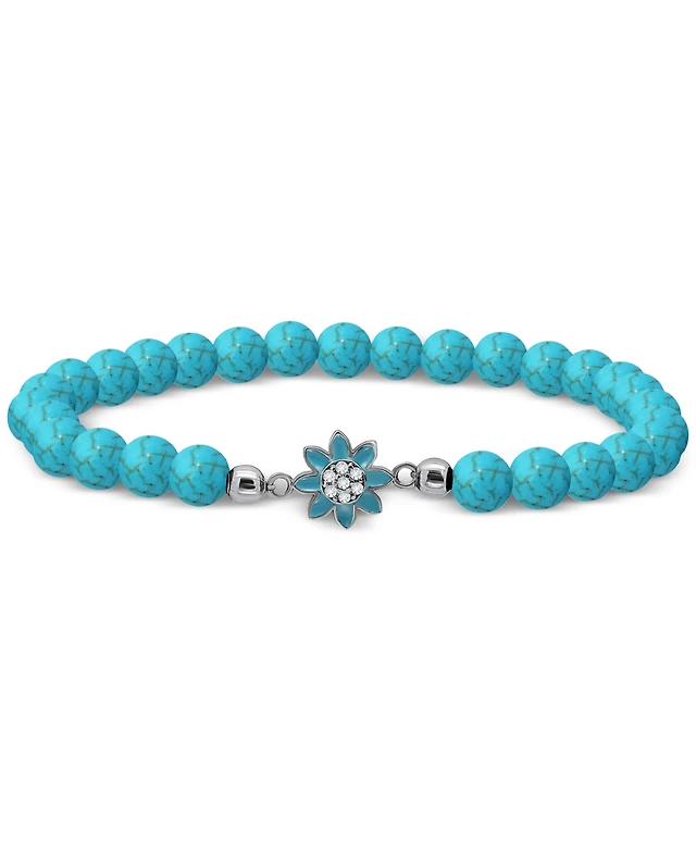 Bling Jewelry Interlocking Hearts Bff Synthetic Compressed Turquoise Strand Bead Stretch Bracelet Gold Plated Sterling Silver