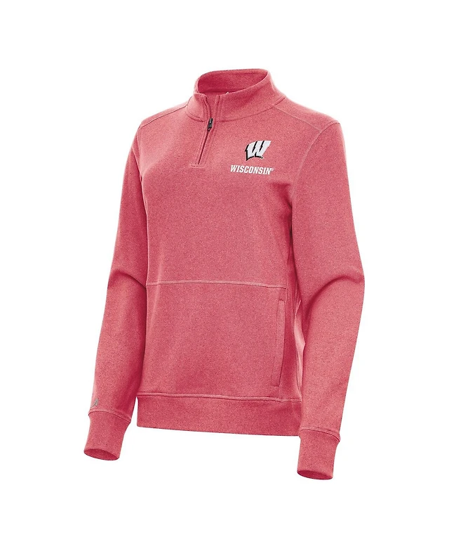 Antigua Women's Heather Red Wisconsin Badgers Crush Quarter-Zip Fleece Sweatshirt