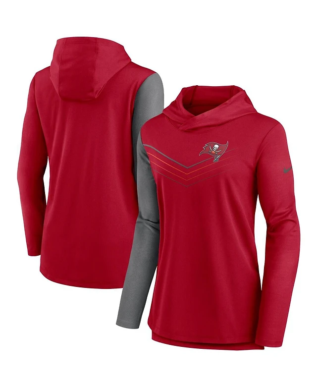 Women's Nike Red and Heathered Charcoal Tampa Bay Buccaneers Chevron Hoodie Performance Long Sleeve T-shirt