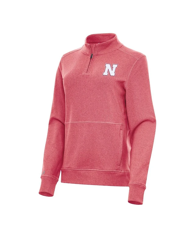 Antigua Women's Heather Red Nebraska Huskers Crush Quarter-Zip Fleece Sweatshirt