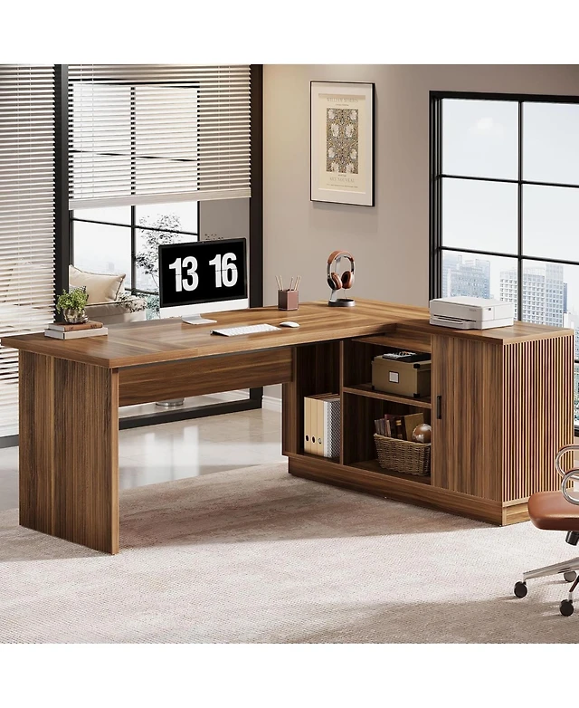 L-Shaped Desk Corner Computer Desk with Open Storage Hutch and Cabinet