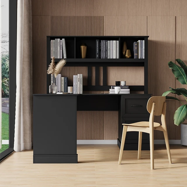 Aheaplus 59'' W L-Shaped Computer Desk with Tall Hutch,Corner