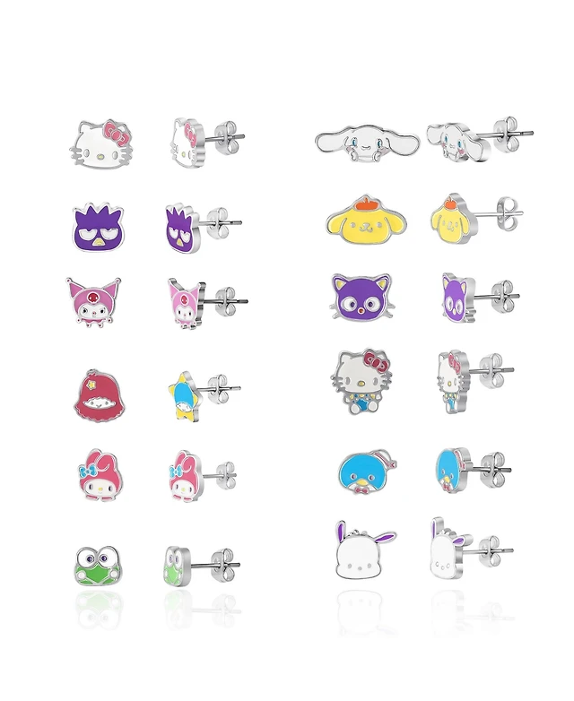 Sanrio Womens Hello Kitty and Friends Silver Plated and Enamel Stud Earrings - My Melody, Officially Licensed