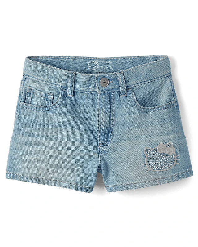 Girls Hello Kitty® Rhinestone Denim Shortie Shorts
