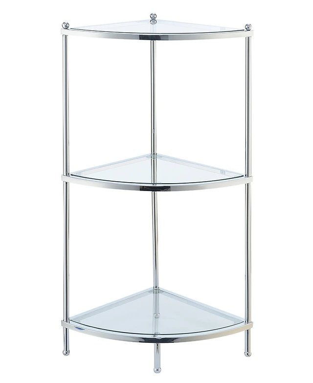 Corner Shelves 2 pcs with Chrome Supports Glass Black 17.7"x17.7"