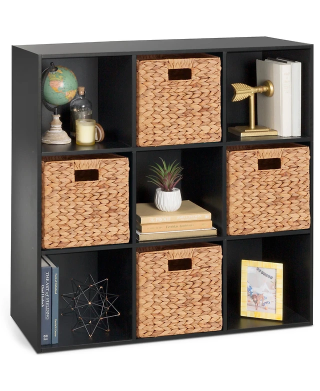 Slickblue 4-Tier Modern Stepped Bookshelf with 6 Storage Cubes for Living Room-Black