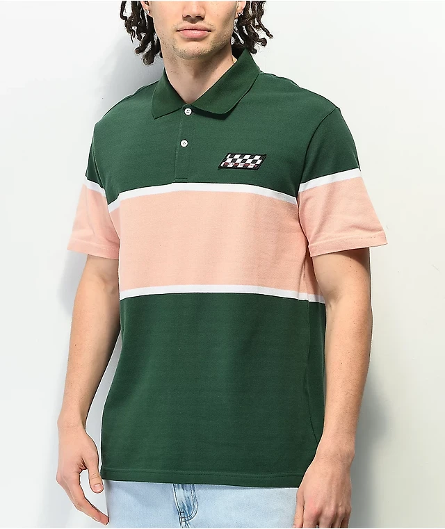 HUF Mixed Up Khaki & Brown Long Sleeve Polo Shirt