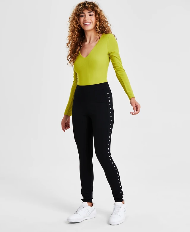 Ann Taylor The Seamed Button Legging Ponte Black Women's