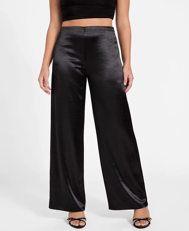 T Tahari Women's Pull-On High-Rise Flare-Leg Metallic Pants