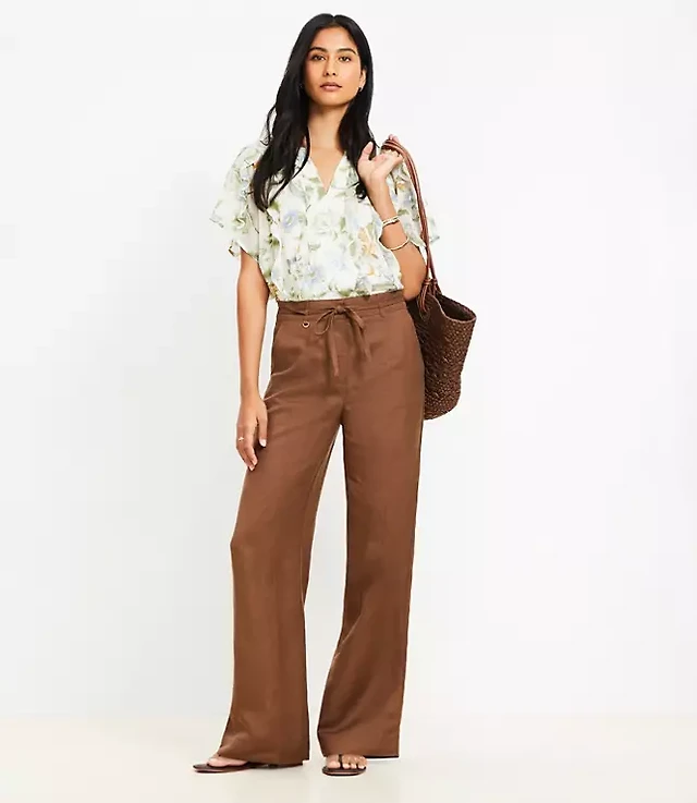 LINEN STRAIGHT LEG PANTS WITH BELT