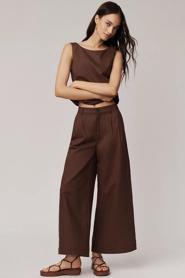 WIDE LEG LINEN PANTS WITH BUTTONS